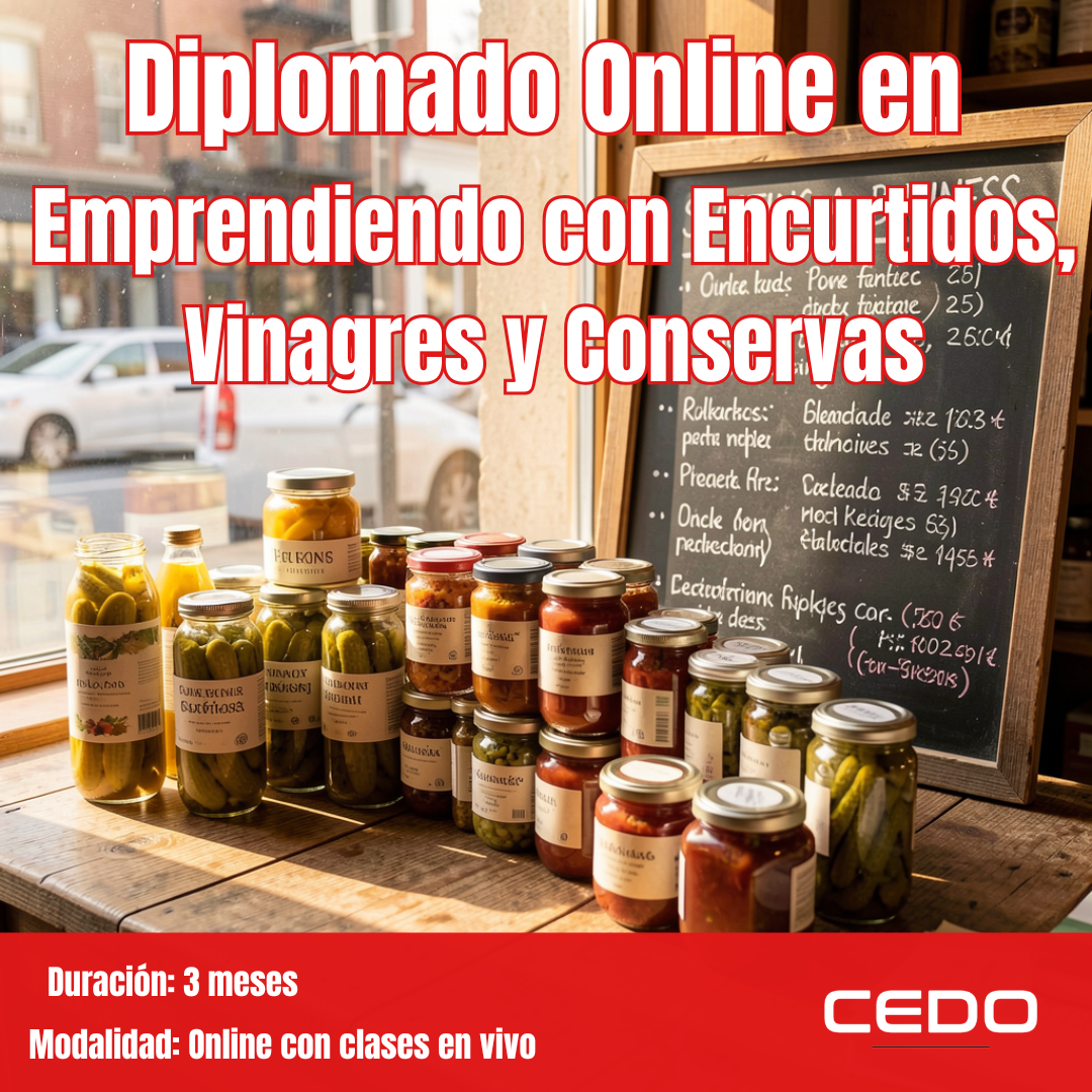 Descubre el arte milenario de los encurtidos y fermentos a través de un diplomado 100% online. Aprende técnicas tradicionales y modernas para elaborar productos saludables, llenos de sabor y con valor agregado, ideales para emprender o innovar en la cocina. Conviértete en un experto en conservación natural y sabor auténtico.